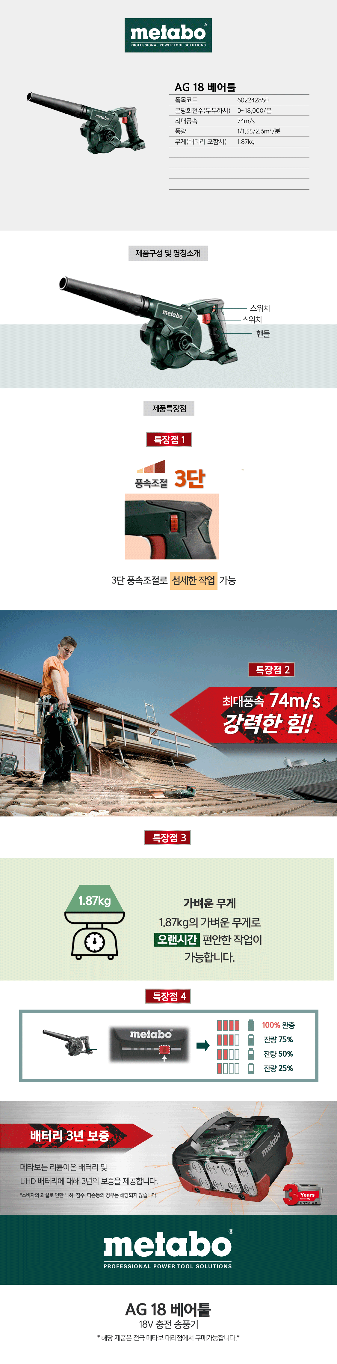 충전 18V 송풍기[베어툴]