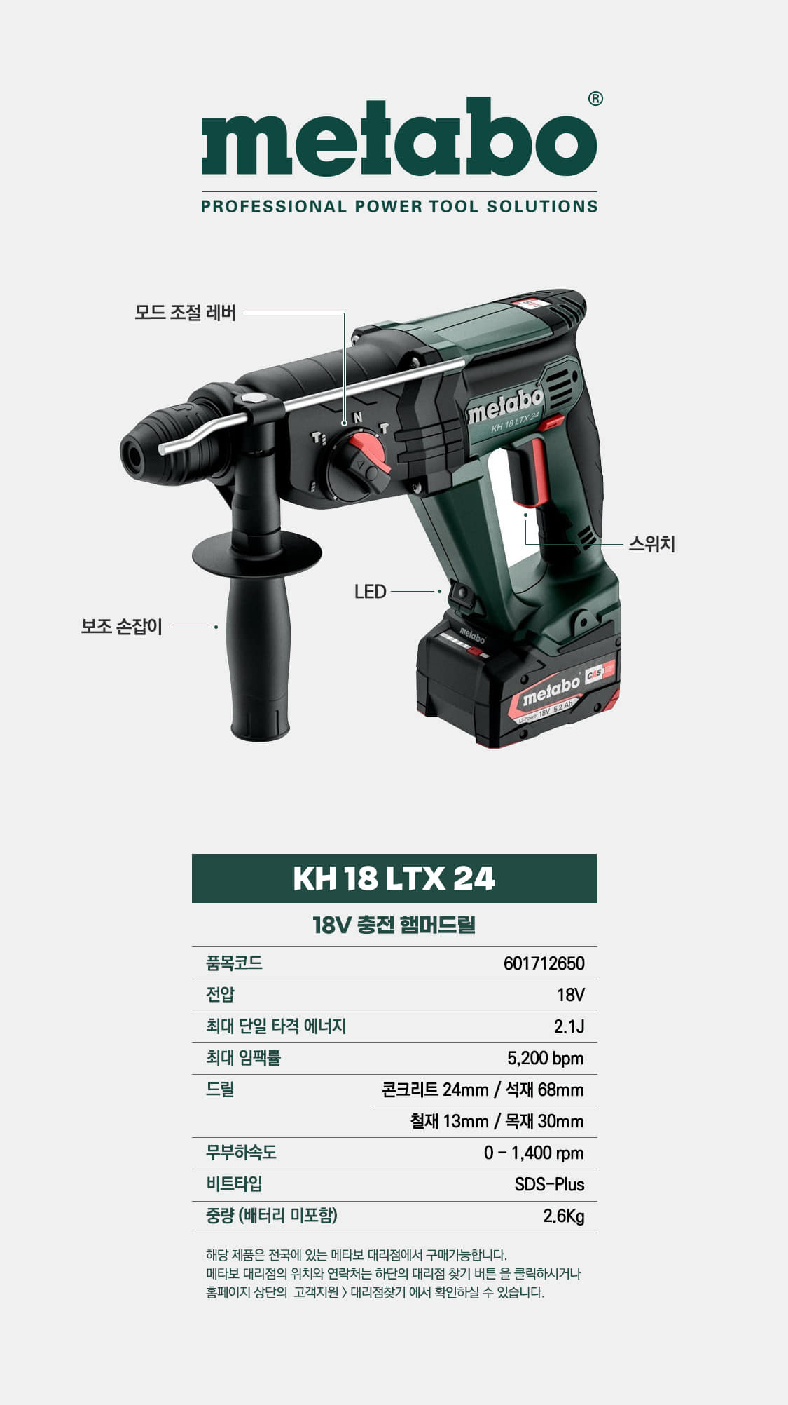 ■ 3가지 모드(치즐링, 해머드릴링, 드릴링) ■ LED작업등 - 작업현장을 밝고 환하게 ■ 먼지보호기능-집진창치 연결로 먼지없이 쾌적한 작업가능 ■ S-오토매틱클러치 - 부하시 스핀들의 동력을 전자적으로 차단하여 안전작업 ■ 소프트스타트 - 부드러운 제품작동으로 사용자의 손목 비틀림 방지, 모터수명 5배 연장