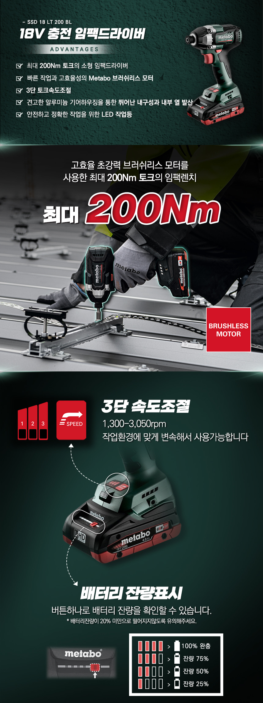■ LiHD 4.0배터리 세트 ■ 최대 200Nm 토크의 소형 임팩드라이버 ■ 3단 토크 속도조절 ■ 견고한 알루미늄 기어하우징을 통한 뛰어난 내구성과 내부 열 발산 ■ 안전하고 정확한 작업을 위한 LED작업등 ■ 브러쉬리스 모터 - 신속한 작업과 최고의 효율성