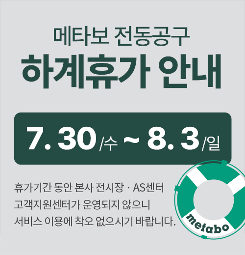 [하계휴가 공지] 메타보 전동공구 25.7.30~8.3